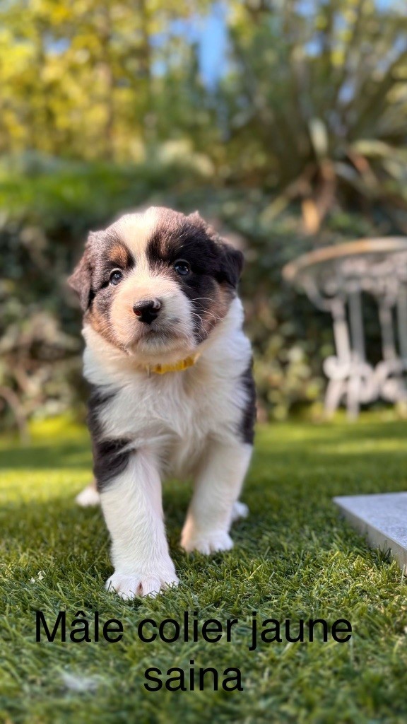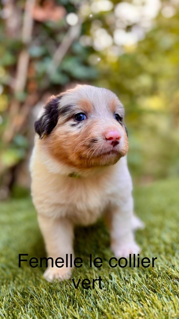 Le *18 septembre*, notre douce *Saïna* et le charmant *Perfect Beauty* ont donné naissance à une magnifique portée de *Bergers Australiens LOF* 🐶💞